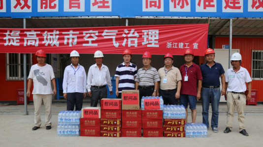 日轮当午凝不去,荆楚如在洪炉中。为做好夏季高温防暑降温工作,切实保障一线员工的安全健康,有效促进工程建设和企业生产经营。7月27日,公司董事长郑小华,副总经理张宏立率队赴新天澜项目现场,看望慰问顶着酷暑奋战在一线的人员,送去防暑降温慰问品,把组织关怀送到职工心坎上。